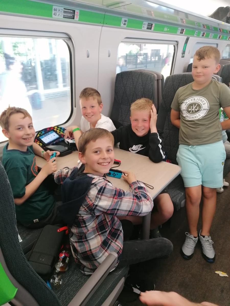 All hats safely on board the train home. The train left on time and if there are no hold ups we will see you all at 7.23pm this evening. We will only post again if there is any change to this.